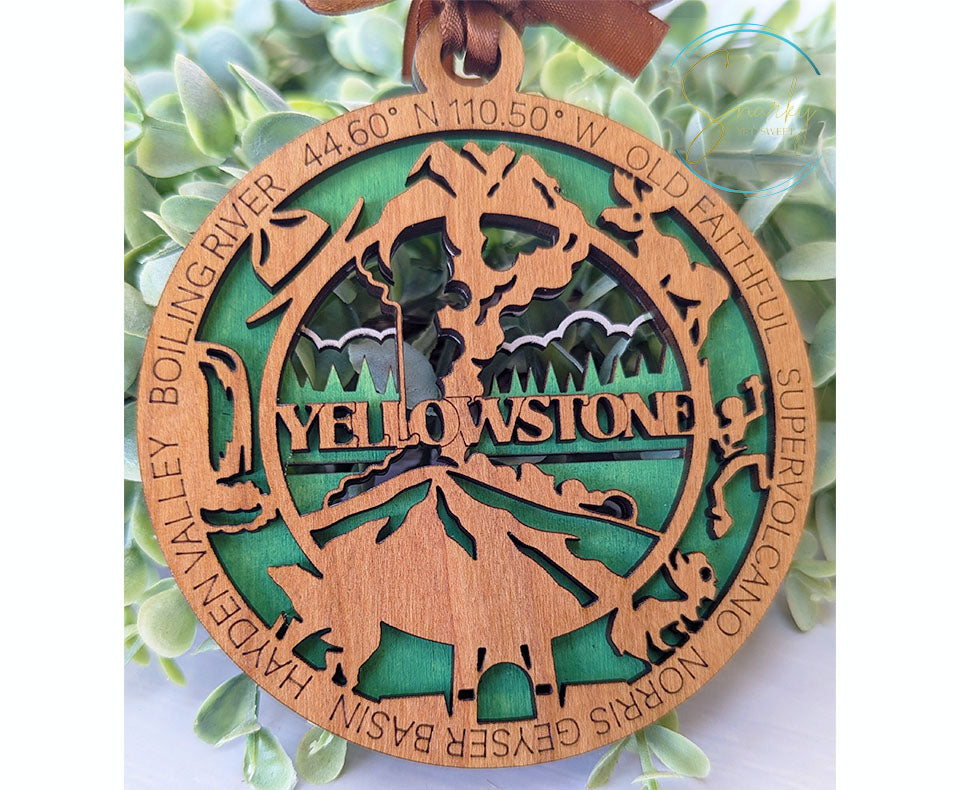 Relive your favorite trip to Yellowstone National Park with this beautiful handmade wood ornament. Ornaments are hand painted with details from the park and a gorgeous laser cut and engraved cherry wood that features many icons specific to Yellowstone and words and phrases for that park. These ornaments are great reminders of your favorite family vacation or hiking adventure and make great gifts for the avid hiker or adventurer in your life.