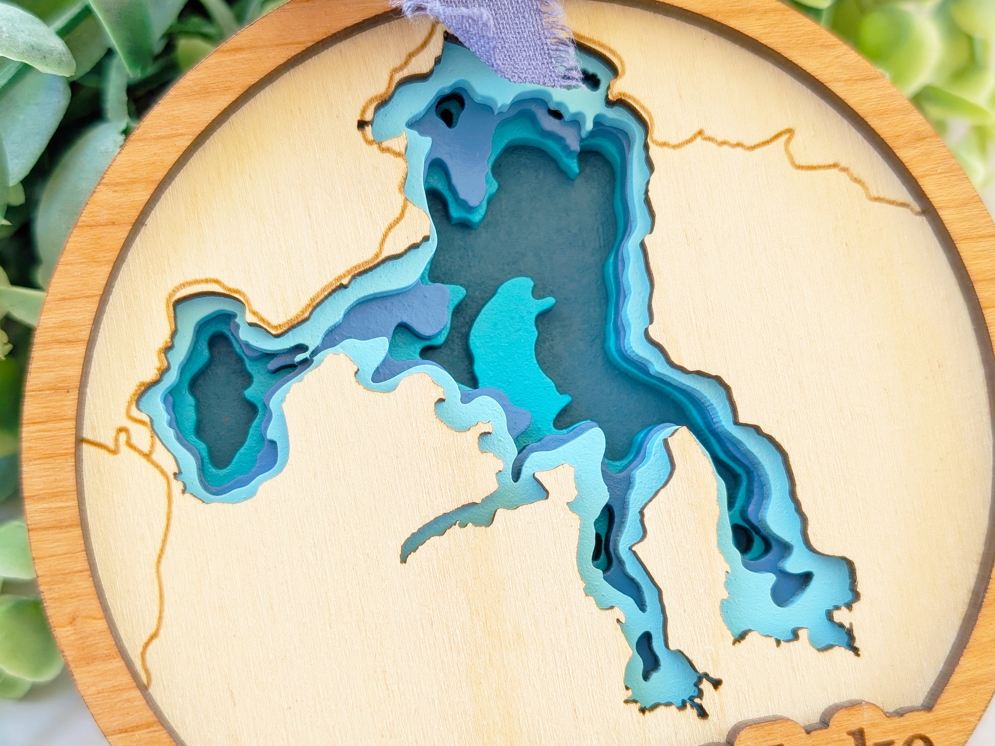 Transform your cherished lake memories into an elegant ornament that reveals the fascinating underwater topography of your favorite waterway. Our handcrafted Lake Depth Ornaments create a unique 3D bathymetric display that celebrates the lakes you love most.