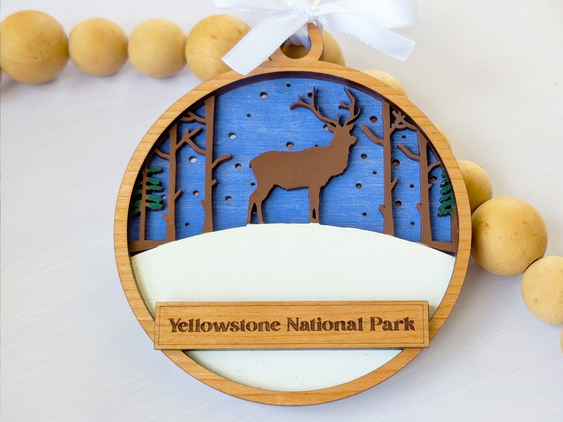 Create the perfect location-specific souvenir with this customizable handcrafted wooden ornament. Each piece features hand-painted bison scenes with iconic wildlife and prairie landscapes, complete with a personalized text banner that can display your shop name, location, or custom message. These versatile ornaments connect customers to their wildlife viewing memories while promoting your brand, making them ideal for gift shops, visitor centers, and tourist destinations nationwide.