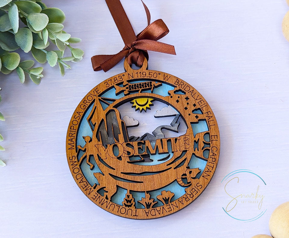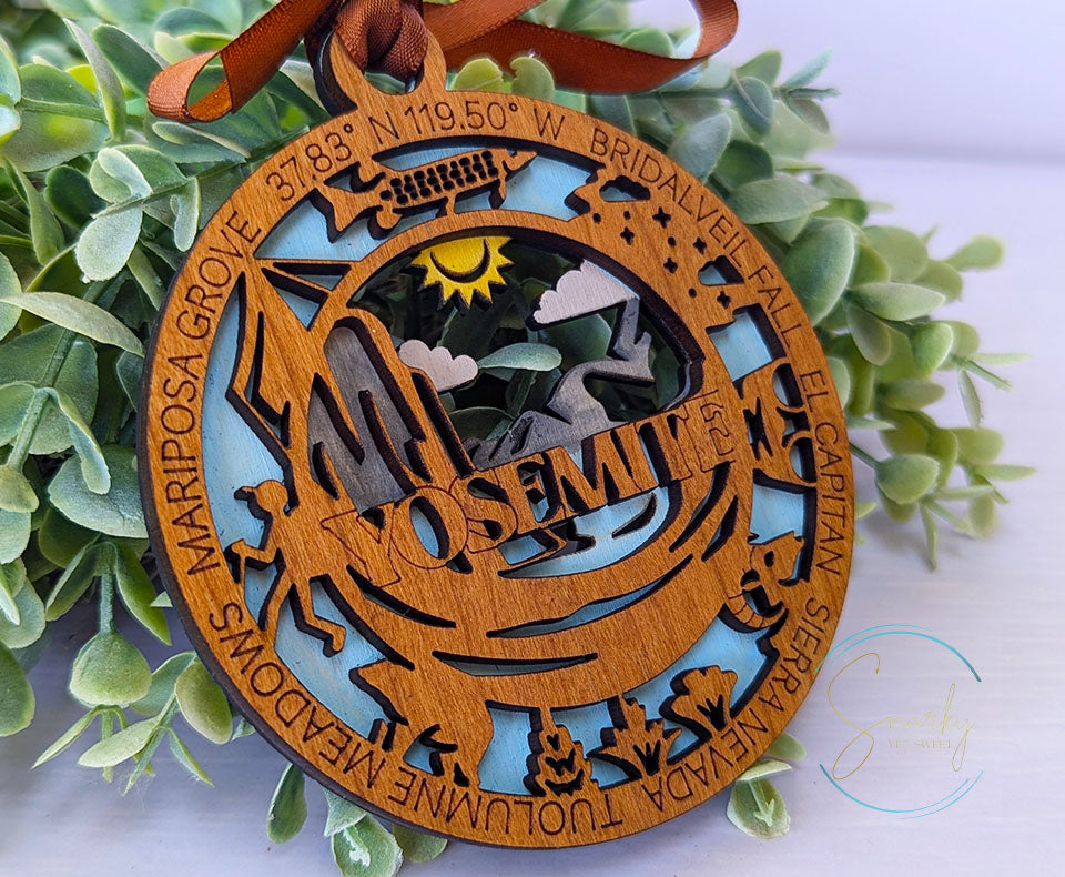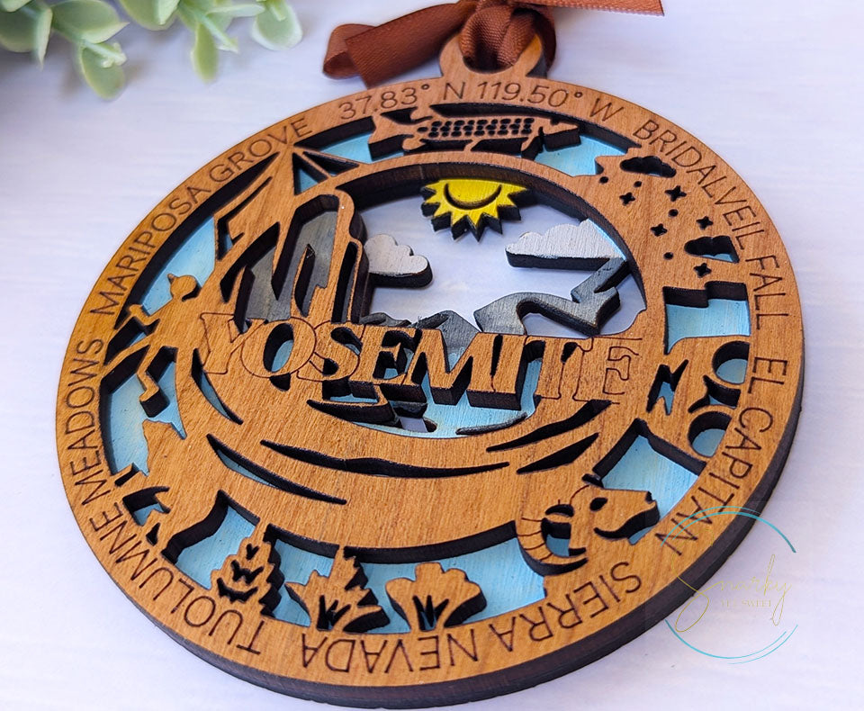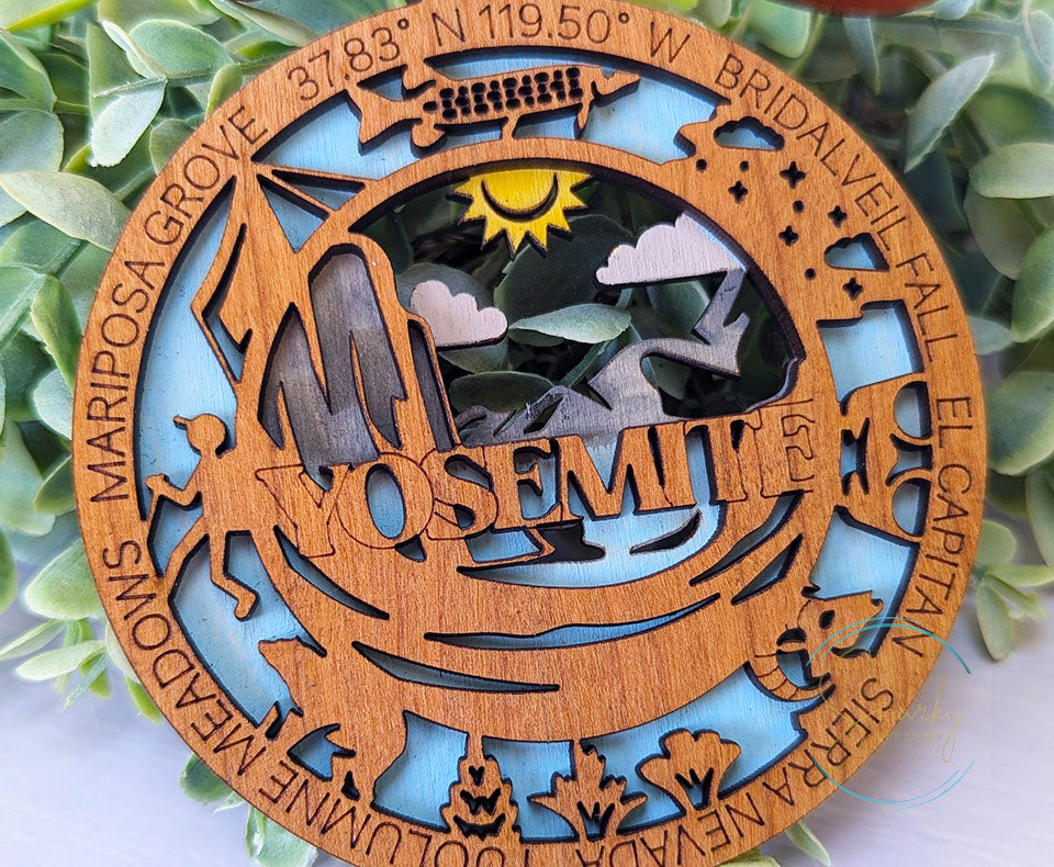 Relive your favorite trip to Yosemite National Park with this beautiful handmade wood ornament. Ornaments are hand painted with details from the park and a gorgeous laser cut and engraved cherry wood that features many icons specific to Yosemite and words and phrases for that park. These ornaments are great reminders of your favorite family vacation or hiking adventure and make great gifts for the avid hiker or adventurer in your life.